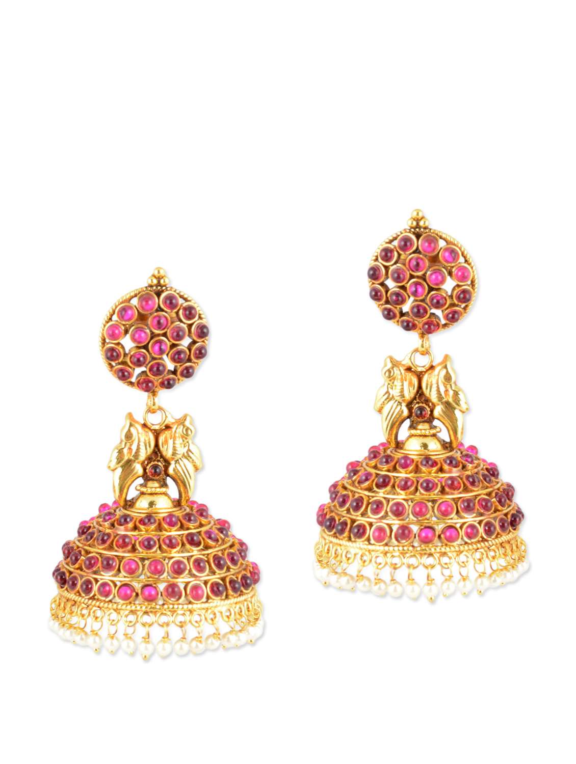 #2 gold jhumkis with magenta beads & similar products...