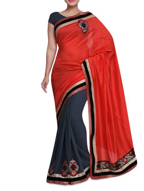 #1 Red and black Embroidered Saree & similar products...