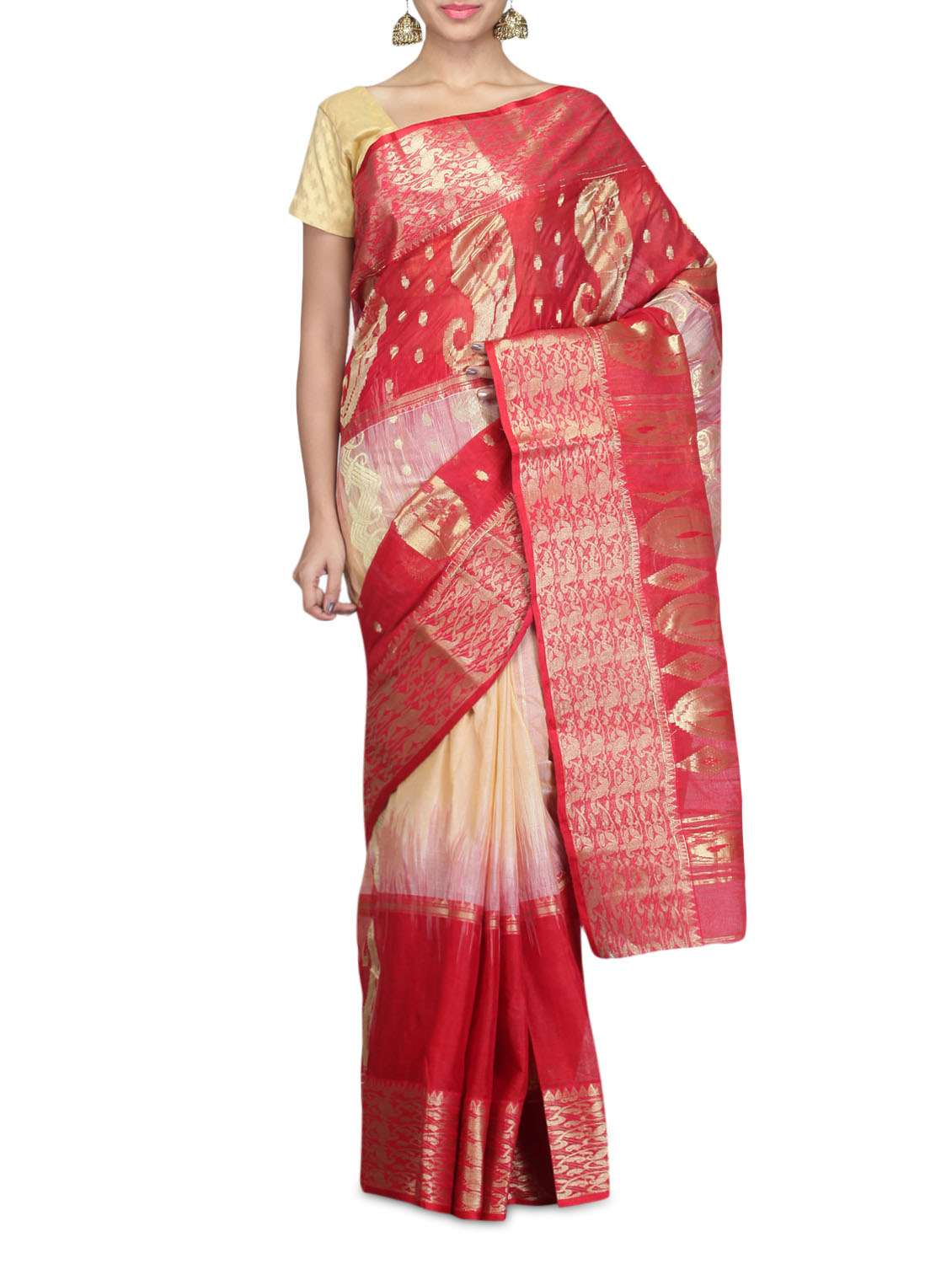 #1 Beige and red printed tussar silk sari & similar products...