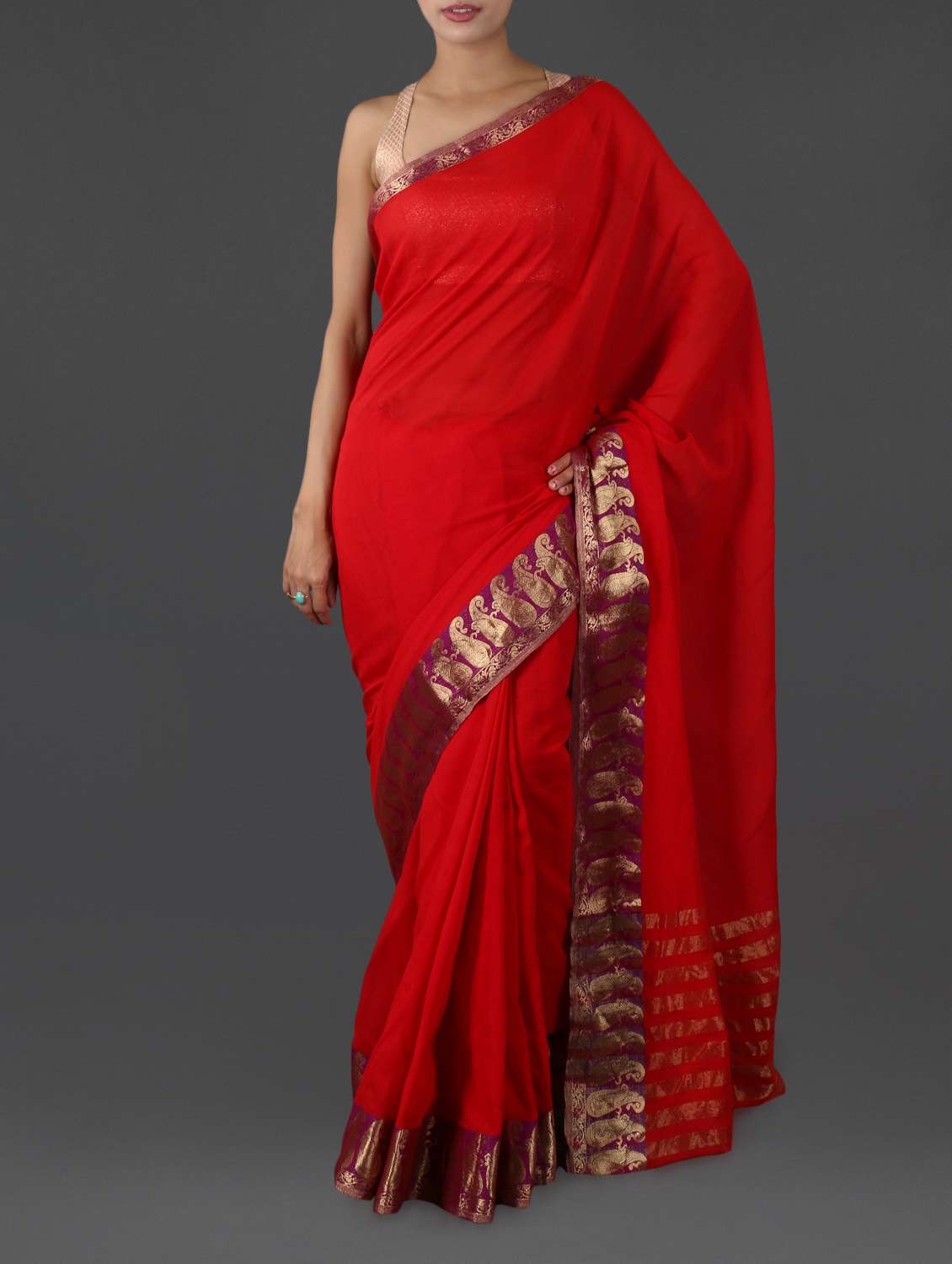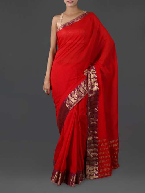 #1 red pure cotton saree with paisley border & similar products...