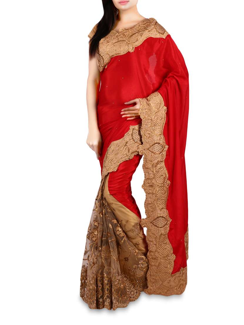 #1 red and beige embroidered georgette saree & similar products...