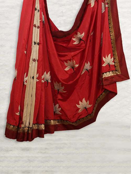 #1 Elegant Red & Beige Matka Silk Saree & similar products...