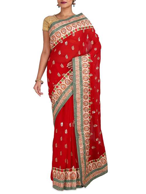 #1 red georgette embroidered saree & similar products...