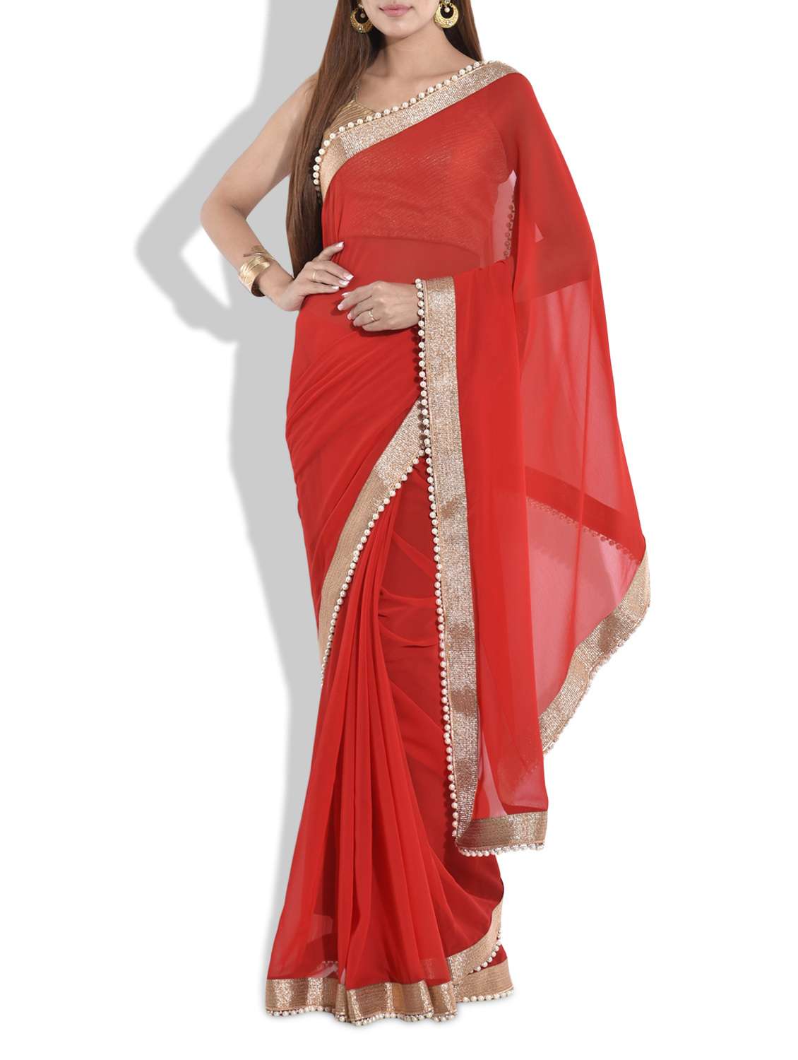 #1 red saree with gold beaded lace border & similar products...