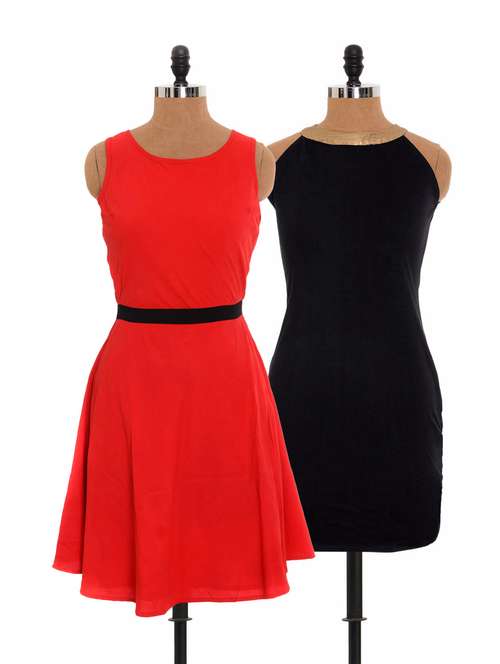 #1 combo of red dress and stretch black dress & similar products...