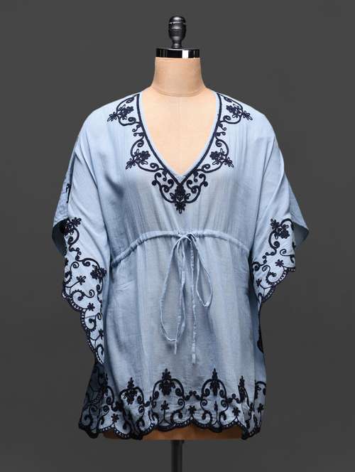 #1 Steel Blue Embroidered Cotton Kaftan & similar products...
