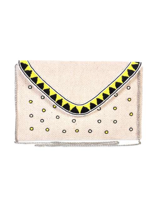 #1 white and yellow embroidered shoulder clutch & similar products...