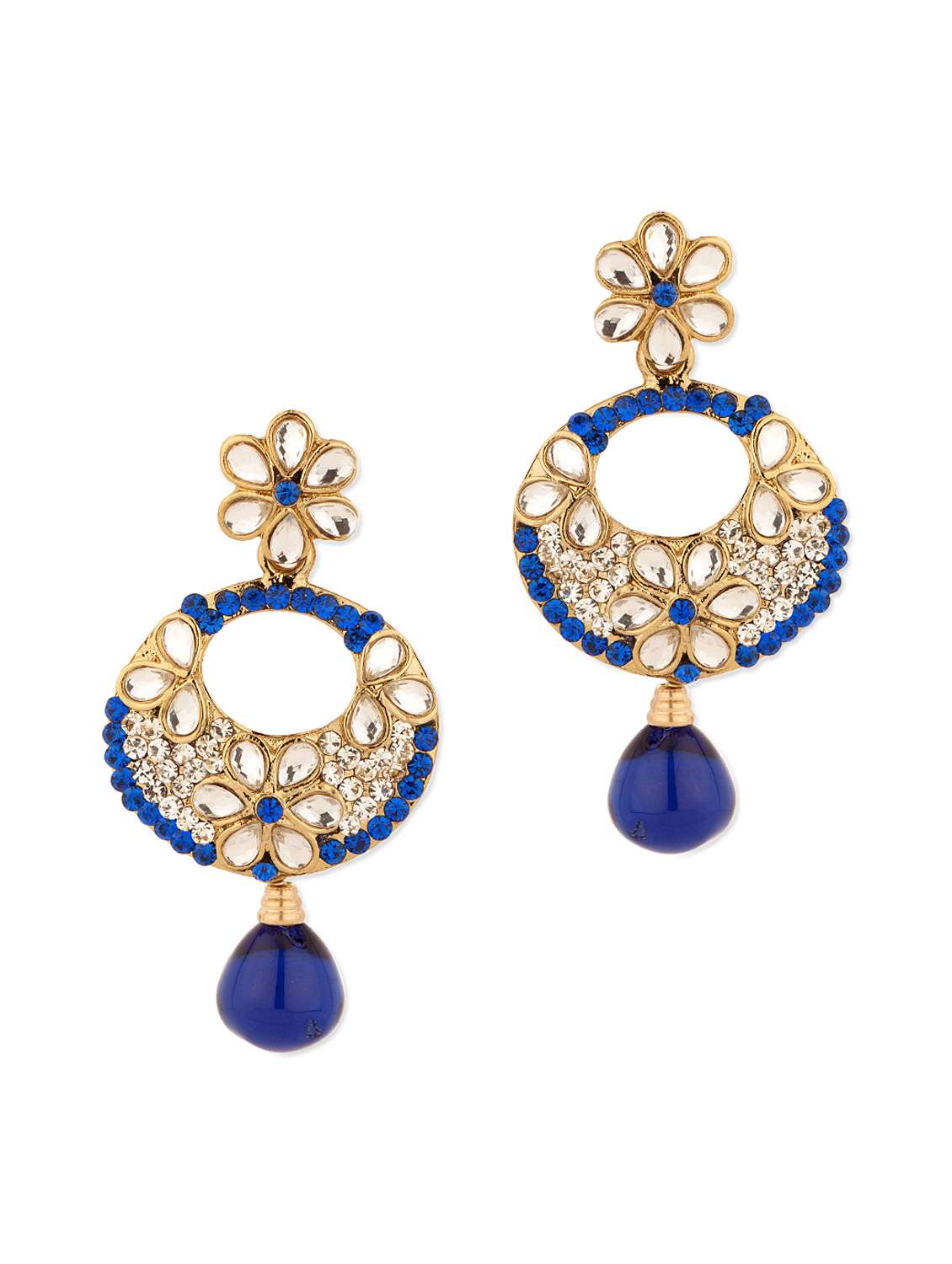 #2 Gold Plated Blue Crescent Floral Earrings Studded With Kundans and stones & similar products...
