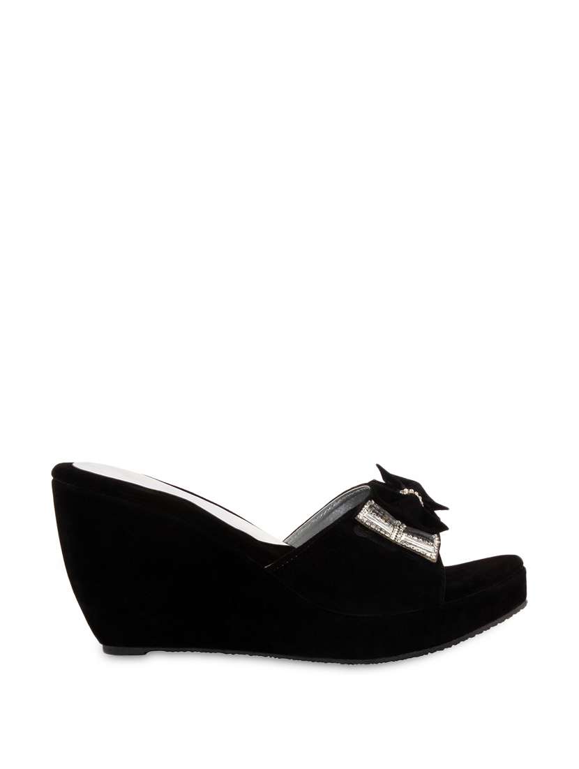 #4 bow embellished black suede wedges & similar products...