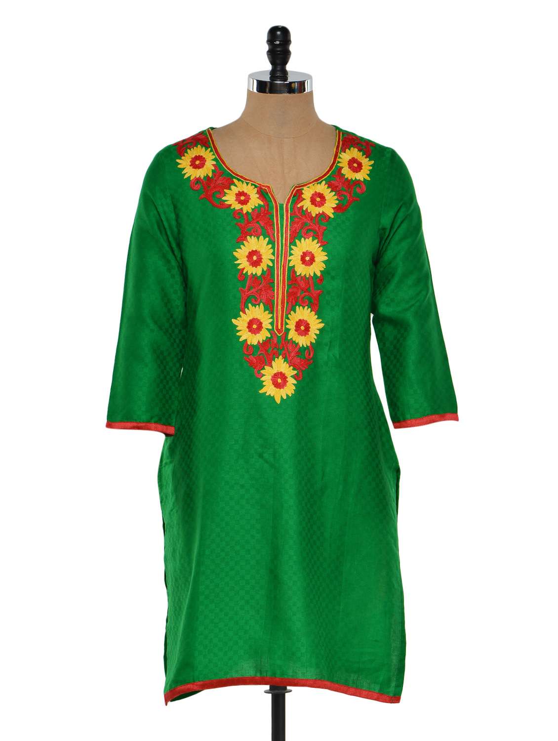 #1 bright green kurta with embroidered yoke & similar products...