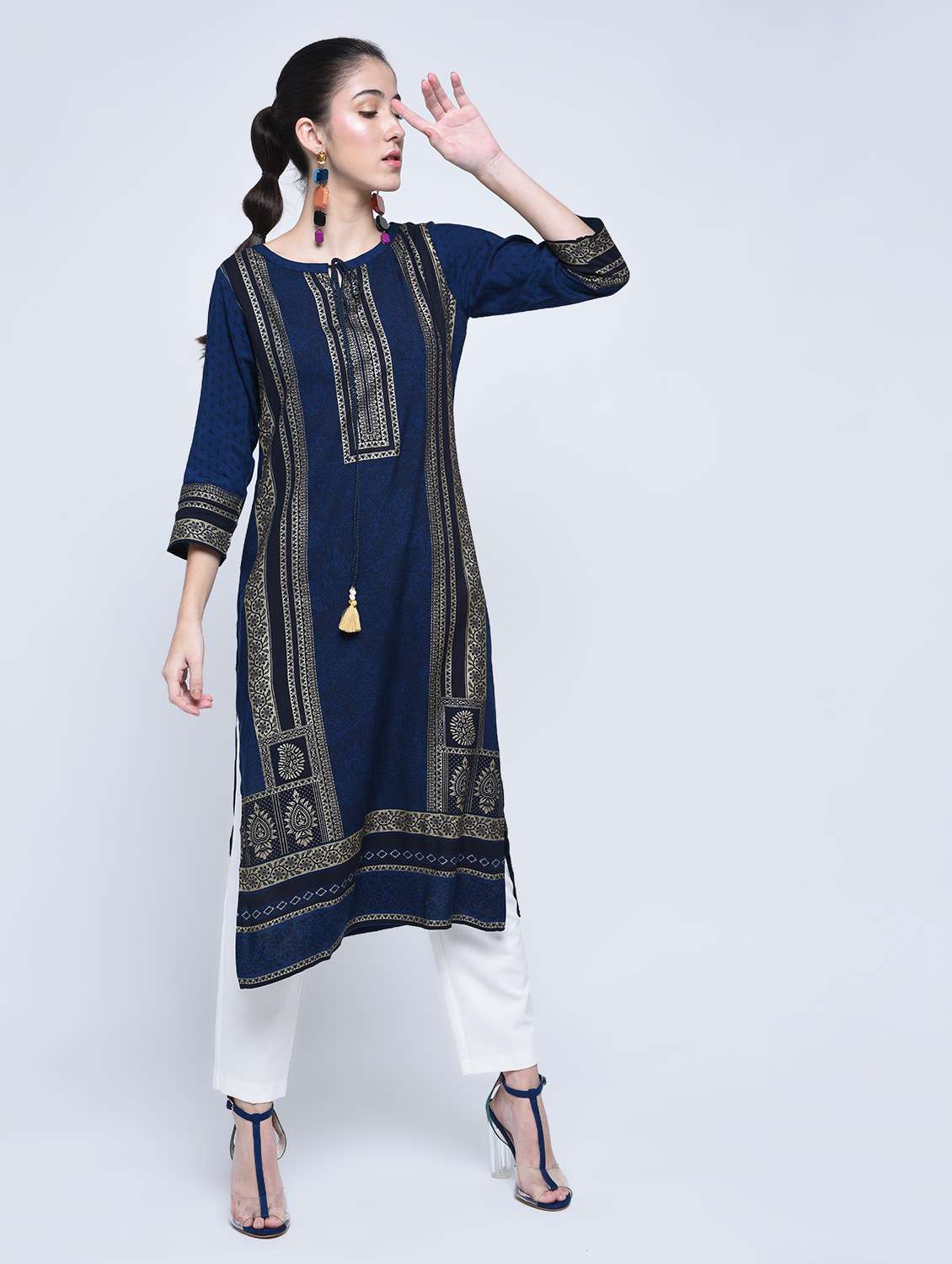 #1 foil print straight kurta with tassels & similar products...