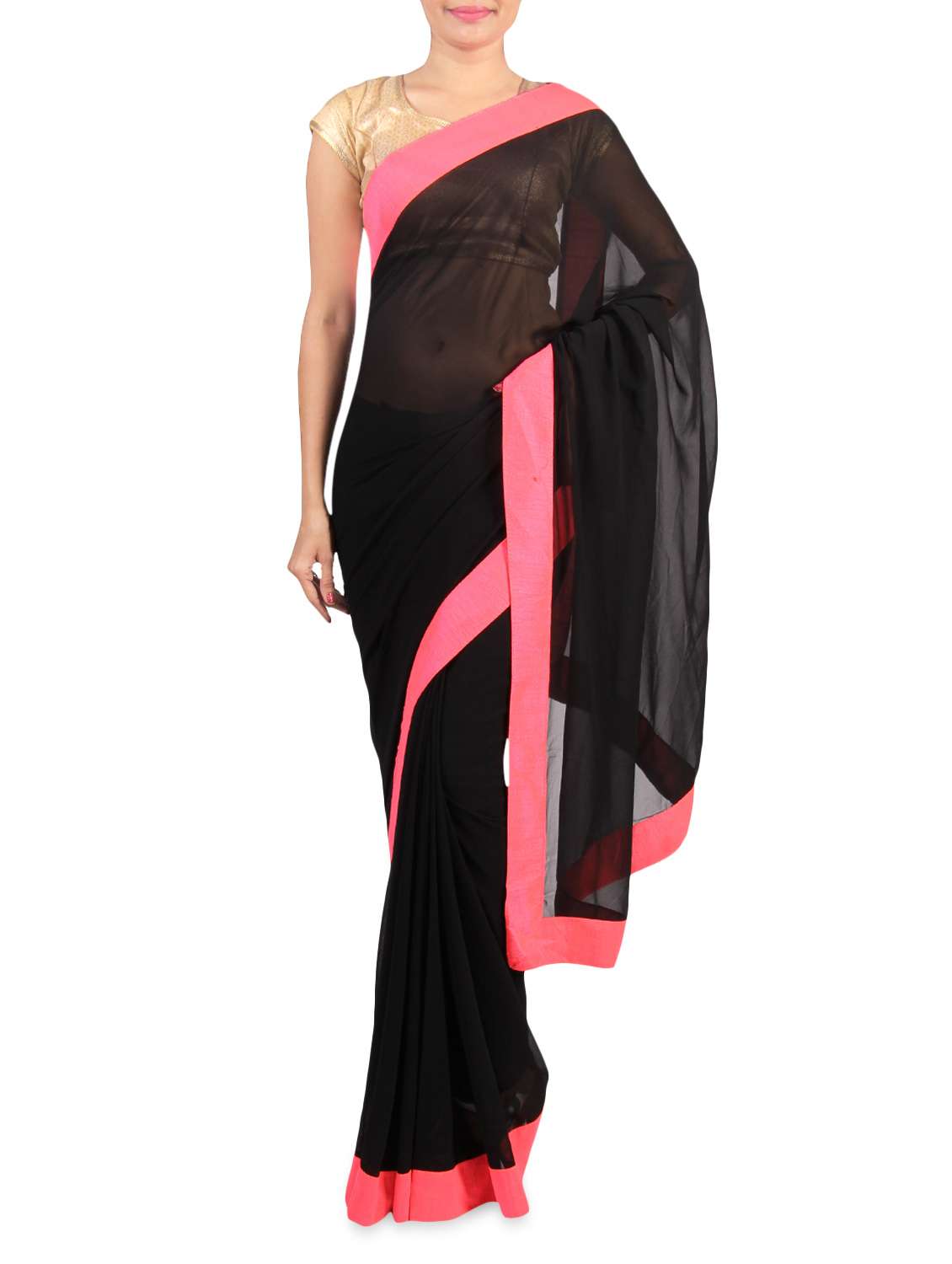 #1 black faux georgette saree with pink border & similar products...