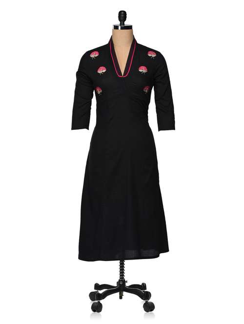 #1 black v-neck embroidered anarkali kurta & similar products...