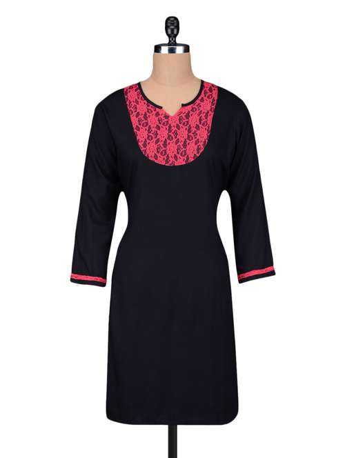 #1 black cotton kurta with lace yoke & similar products...