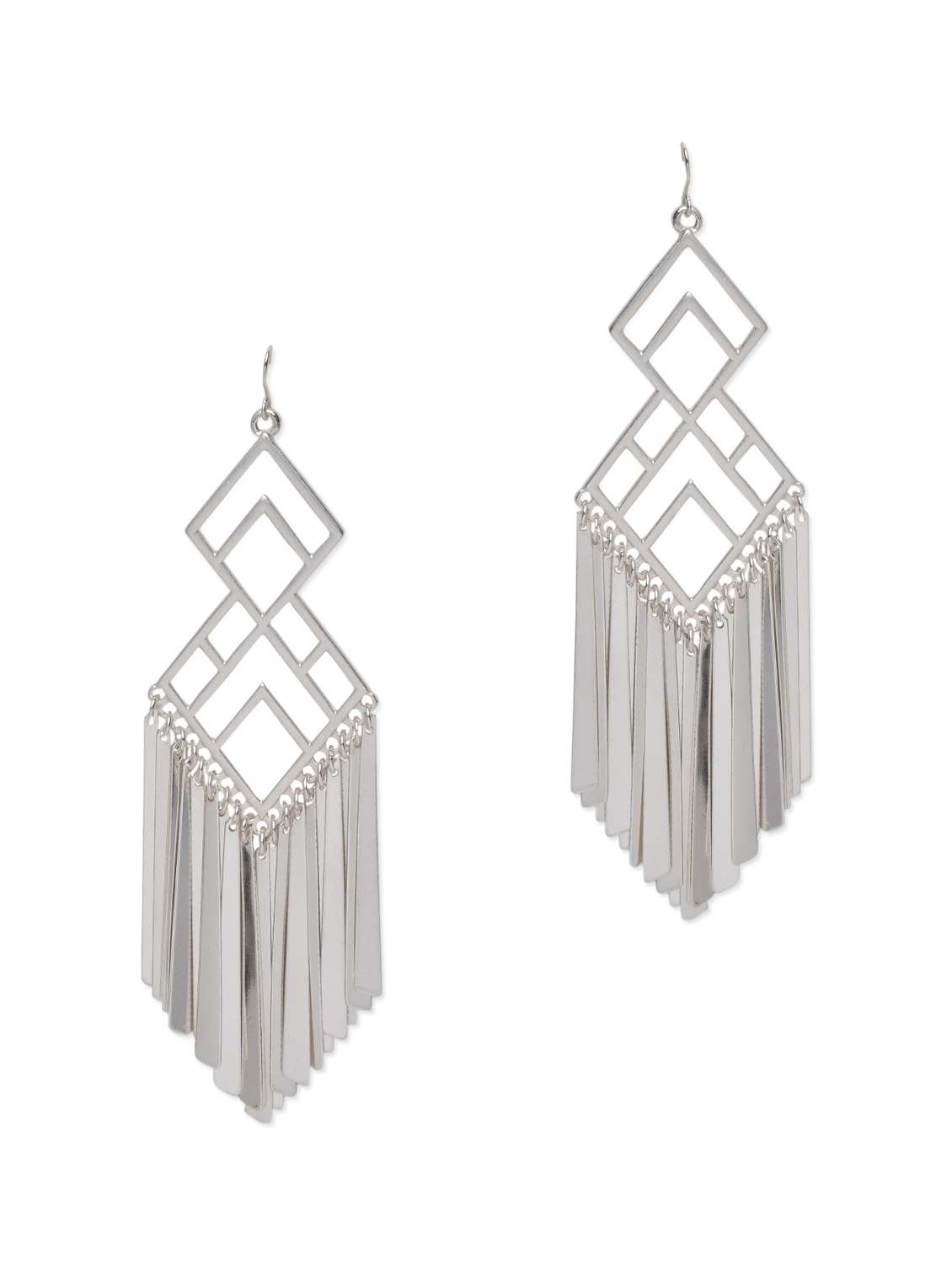 #2 silver geometric inspired fringed earrings & similar products...