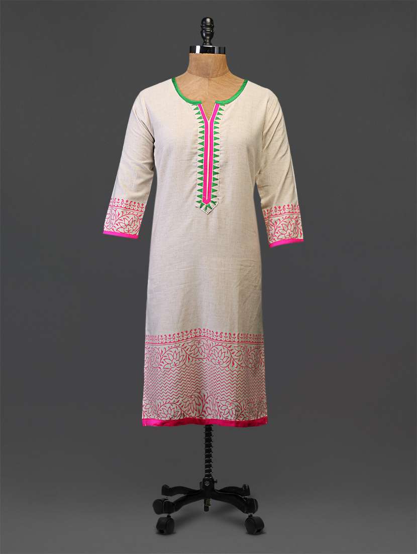 #1 white printed cotton kurta & similar products...