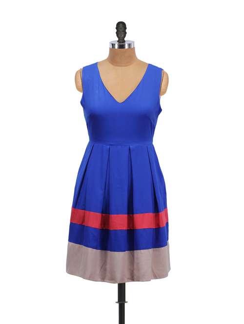 #1 blue pleated v-neck dress & similar products...