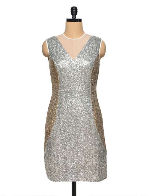 #1 silver and gold sequined sleeveless sheath dress & इसी तरह के उत्पाद...