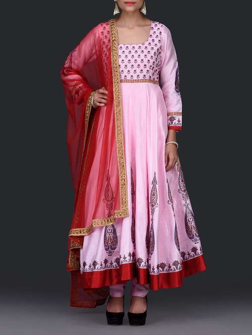 #1 Printed Pink Stitched Anarkali Suit Set & similar products...