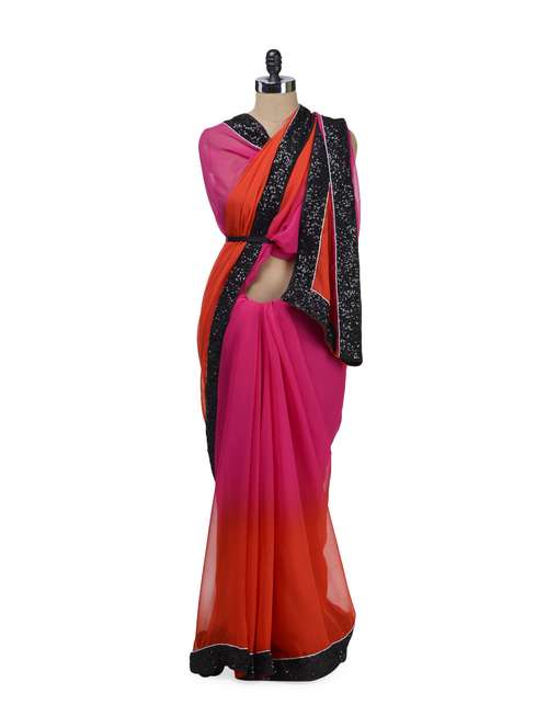 #1 magenta & orange bollywood style saree & similar products...