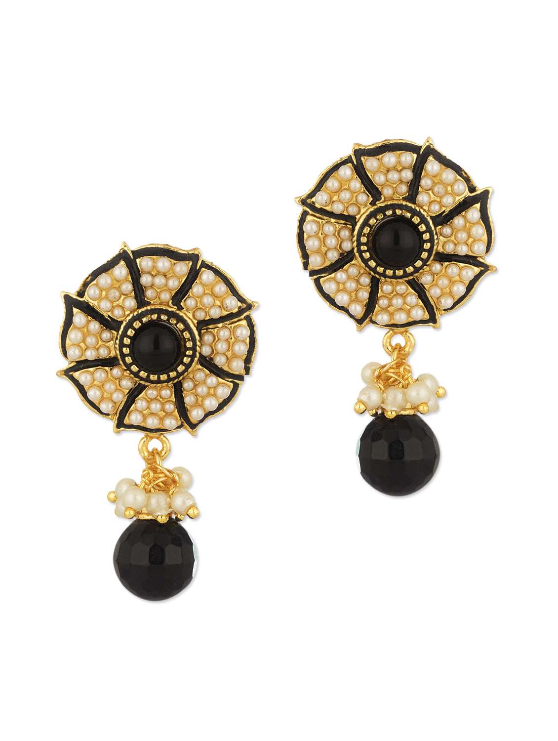 #2 Dazzling Pair Of Floral Earrings With Black stone & similar products...
