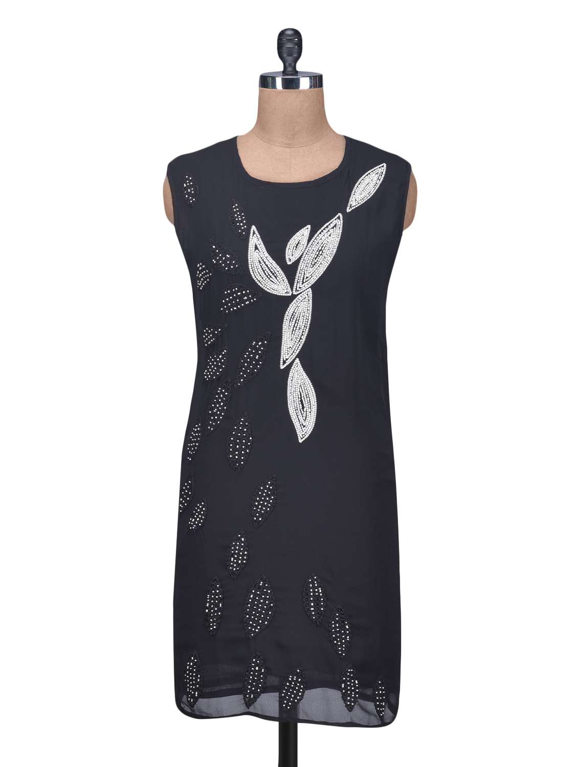 #1 Beaded and Embroidered Black Poly Georgette Shift Dress & similar products...