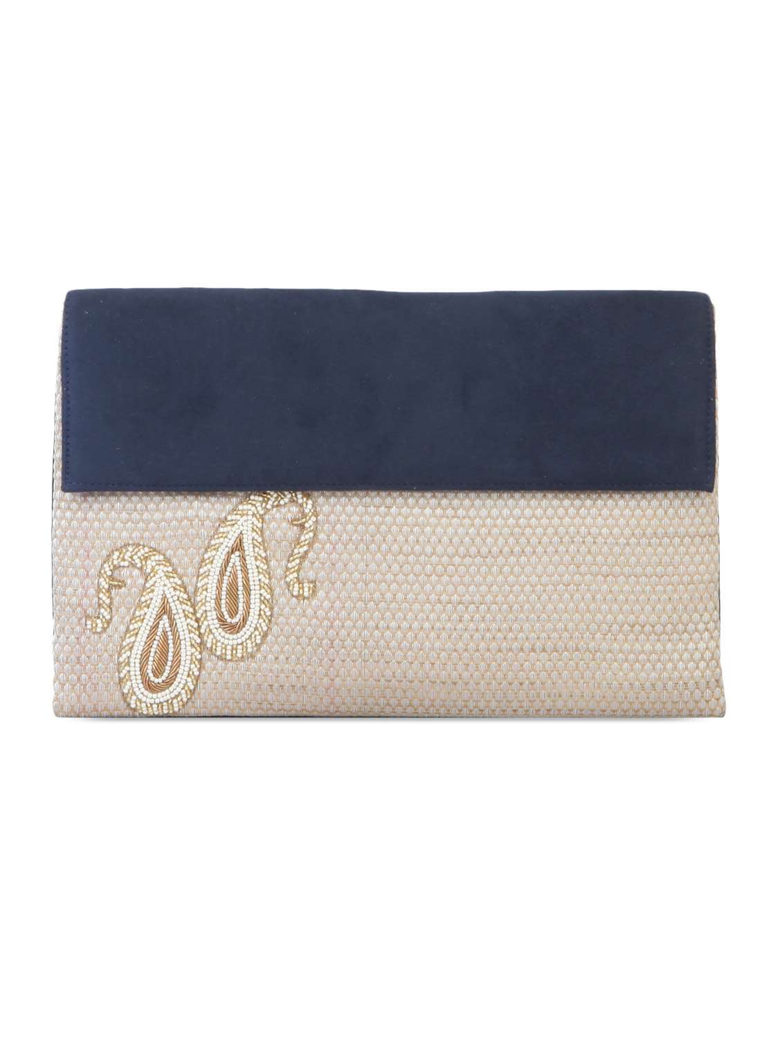 #3 embroidered beige and navy blue clutch & similar products...