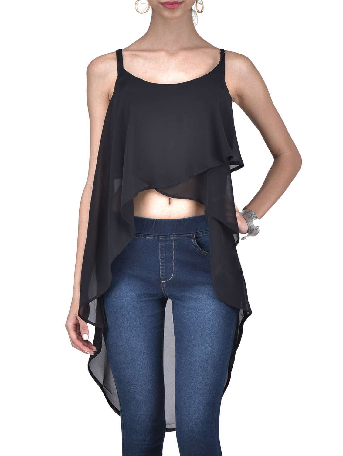 #4 black poly-georgette hi-lo crop top & similar products...
