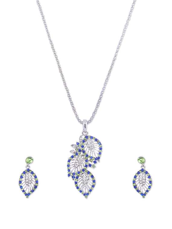 #4 leaf-patterned blue and light green necklace and earrings set & similar products...