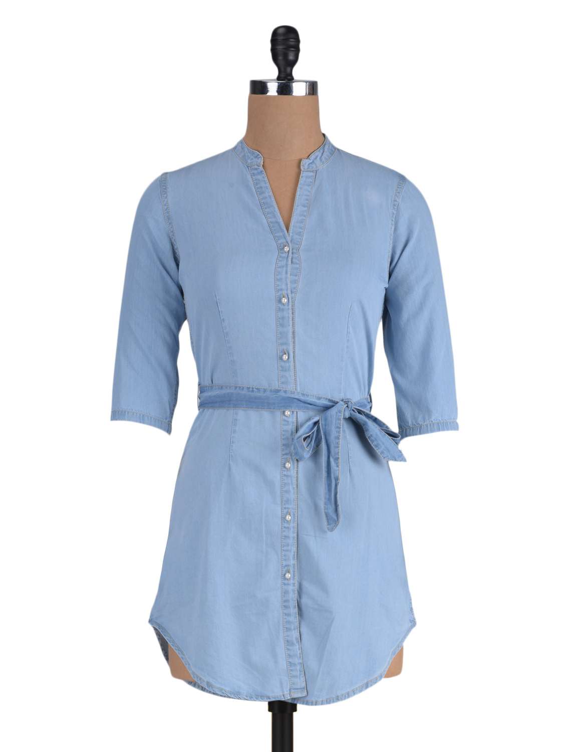 #1 the vanca blue acid washed denim shirt dress & similar products...