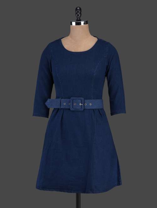 #1 solid blue denim a-line dress & similar products...