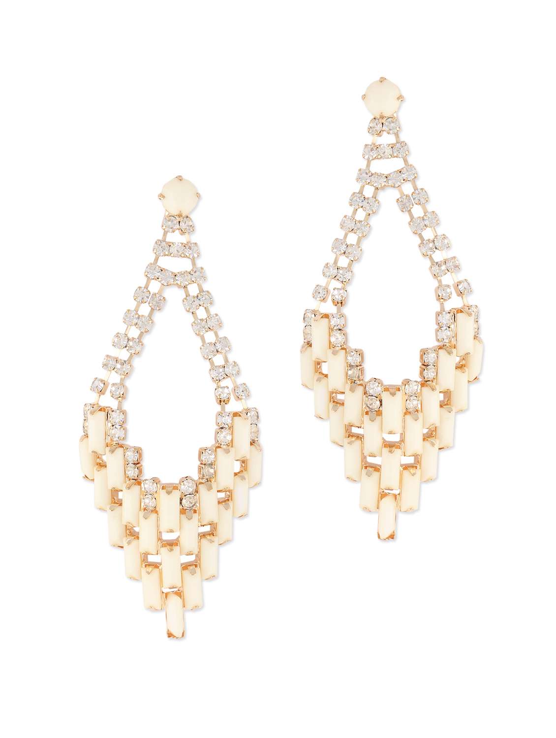#4 elite beige stones and crystal studded chandelier earrings & similar products...