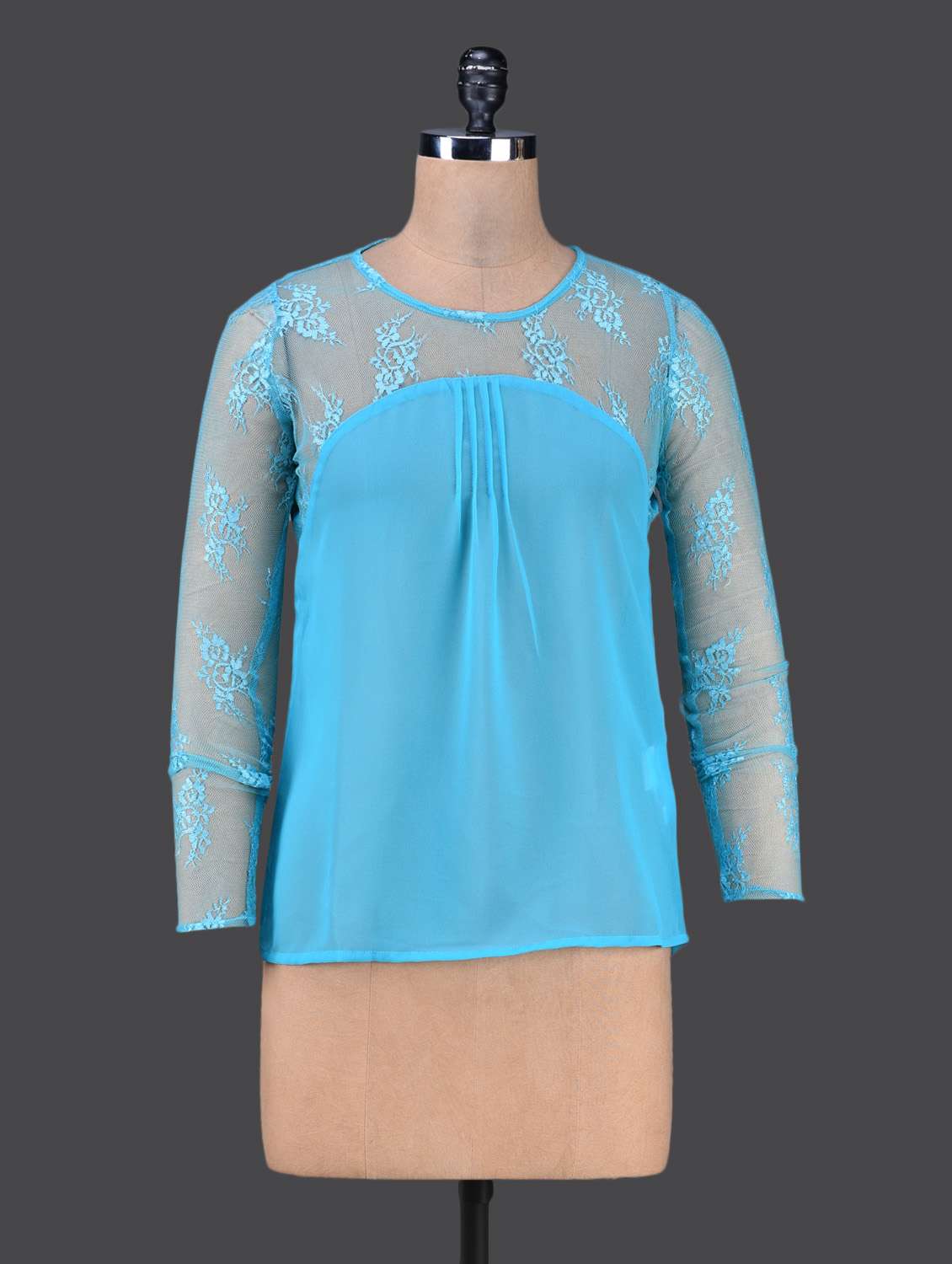 #2 Round neck sheer yoke & sleeve top & similar products...
