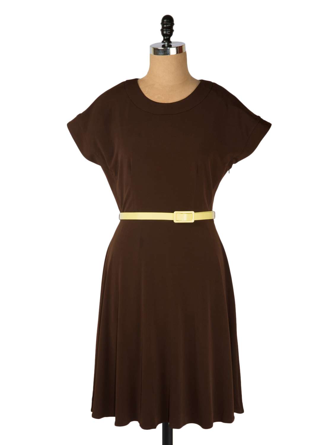 #1 solid brown dress with yellow belt & similar products...