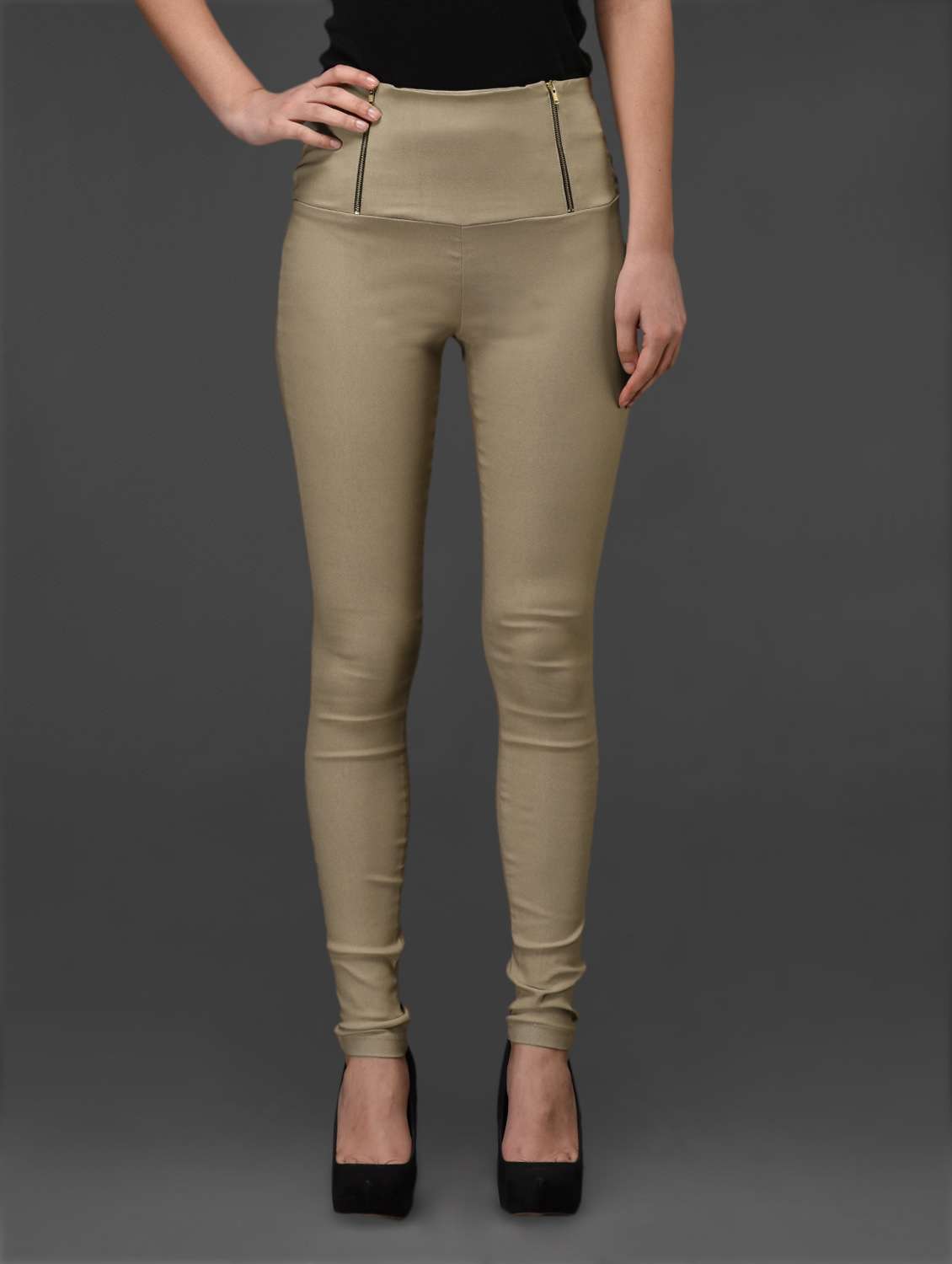 #1 double front zipper beige jeggings & similar products...