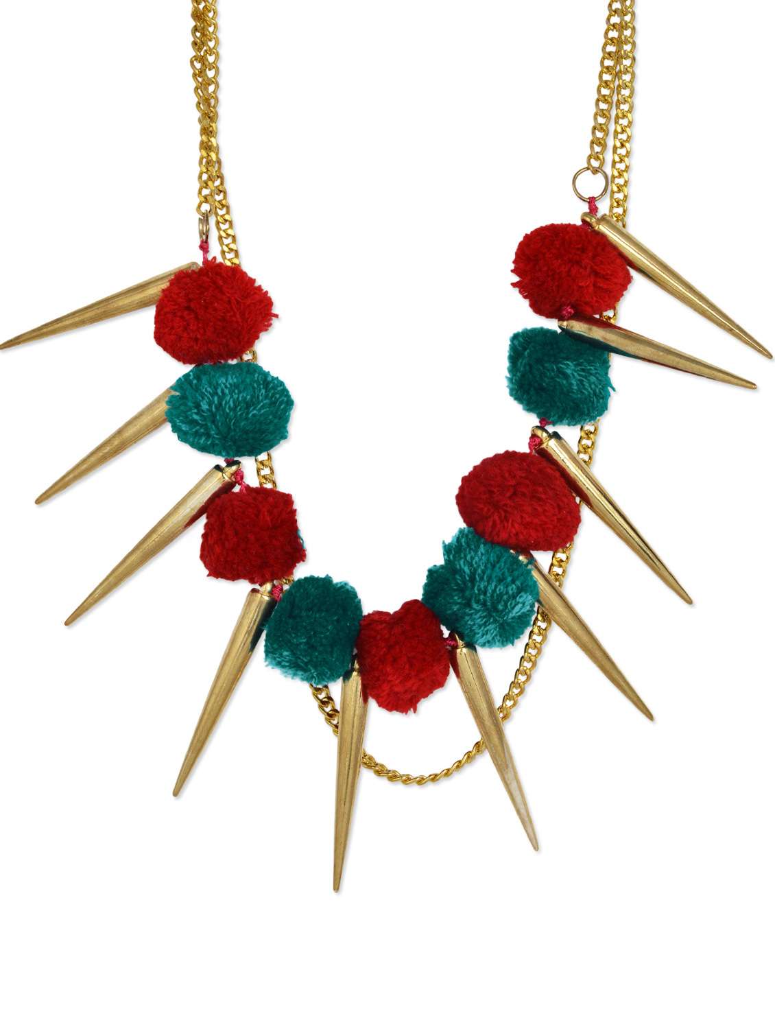 #2 unique red and green pom pom necklace with golden spikes & इसी तरह के उत्पाद...