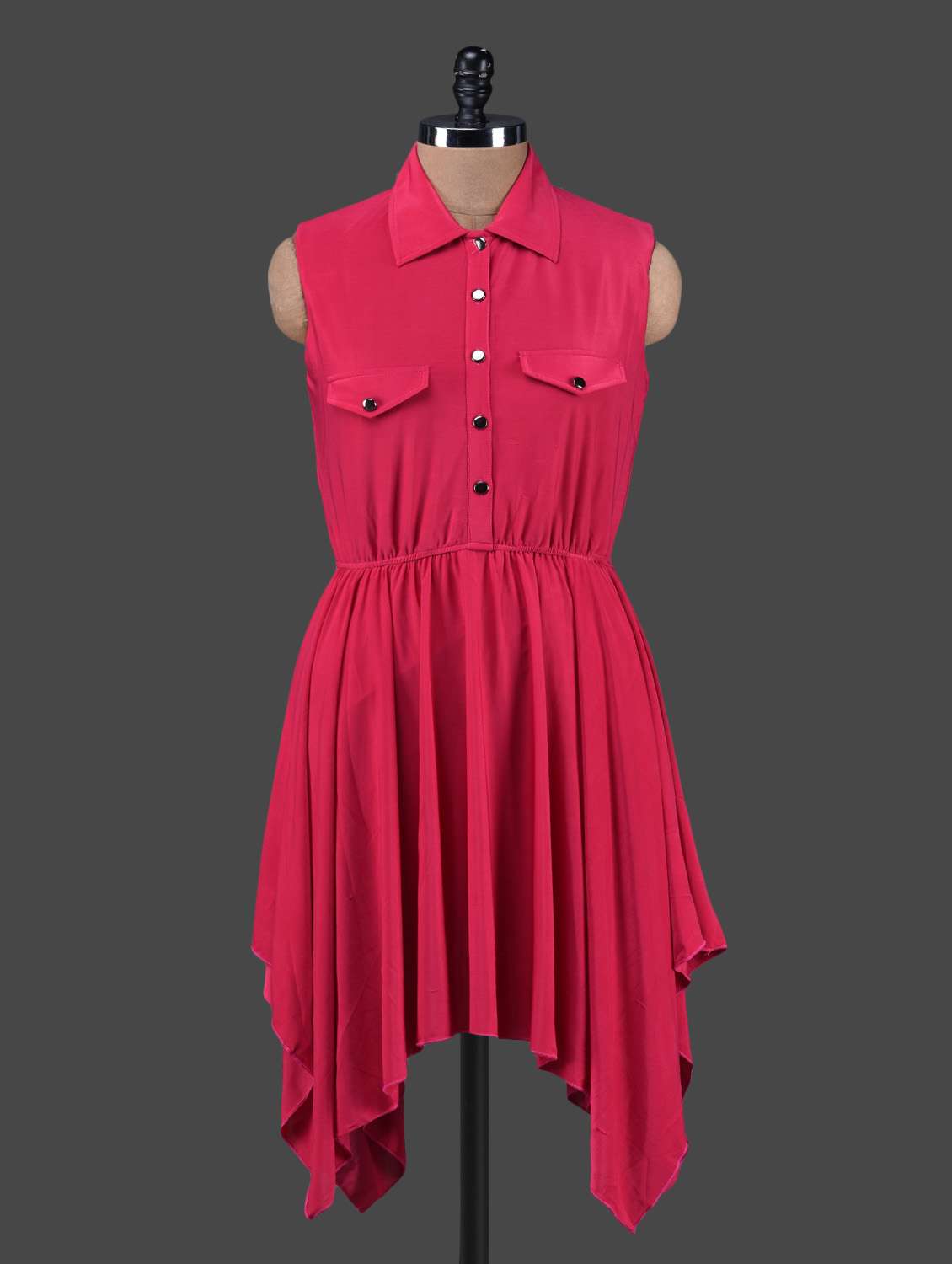 #1 solid magenta sleeveless asymmetric dress & similar products...