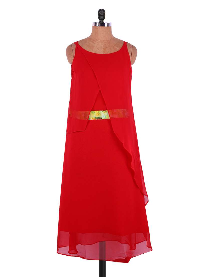 #1 red silk and georgette layered kurti & similar products...