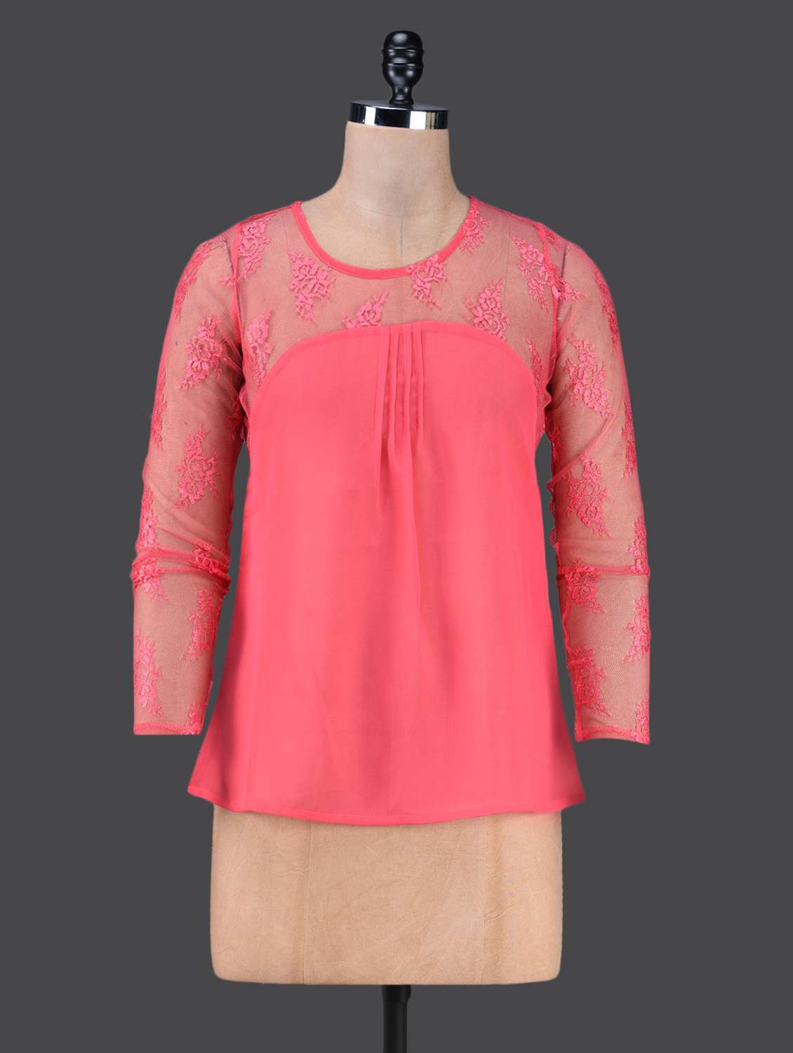 #2 Round neck sheer yoke & sleeve top & similar products...