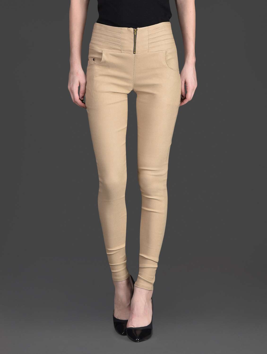 #1 solid color zip opening high waist beige jeggings & similar products...