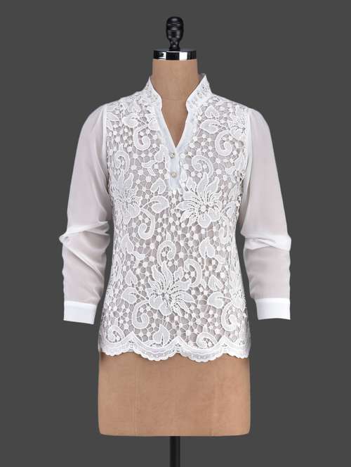 #1 lace mandarin collar solid white top & similar products...