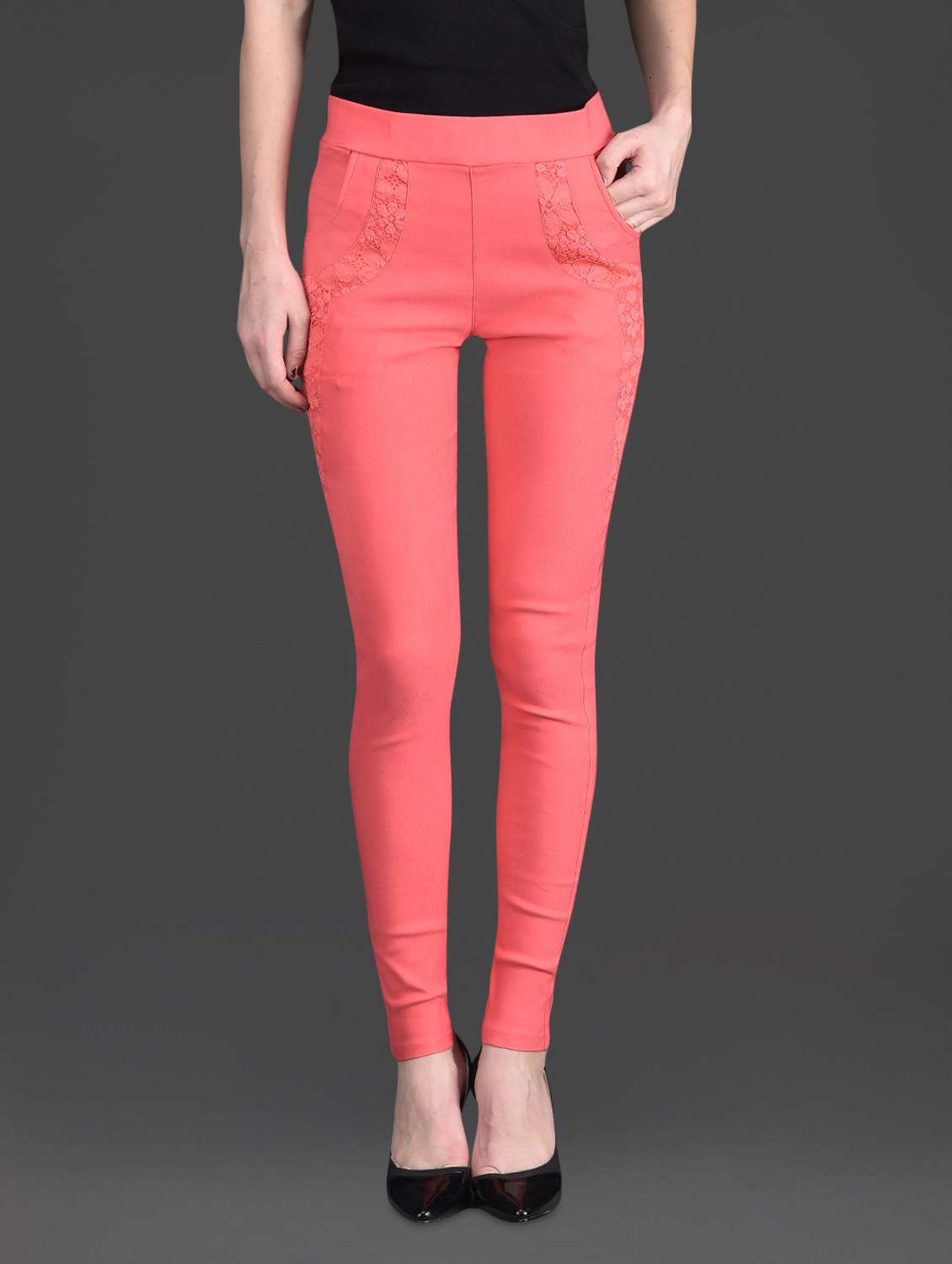 #2 solid color laced pocket high waist pink jeggings & similar products...