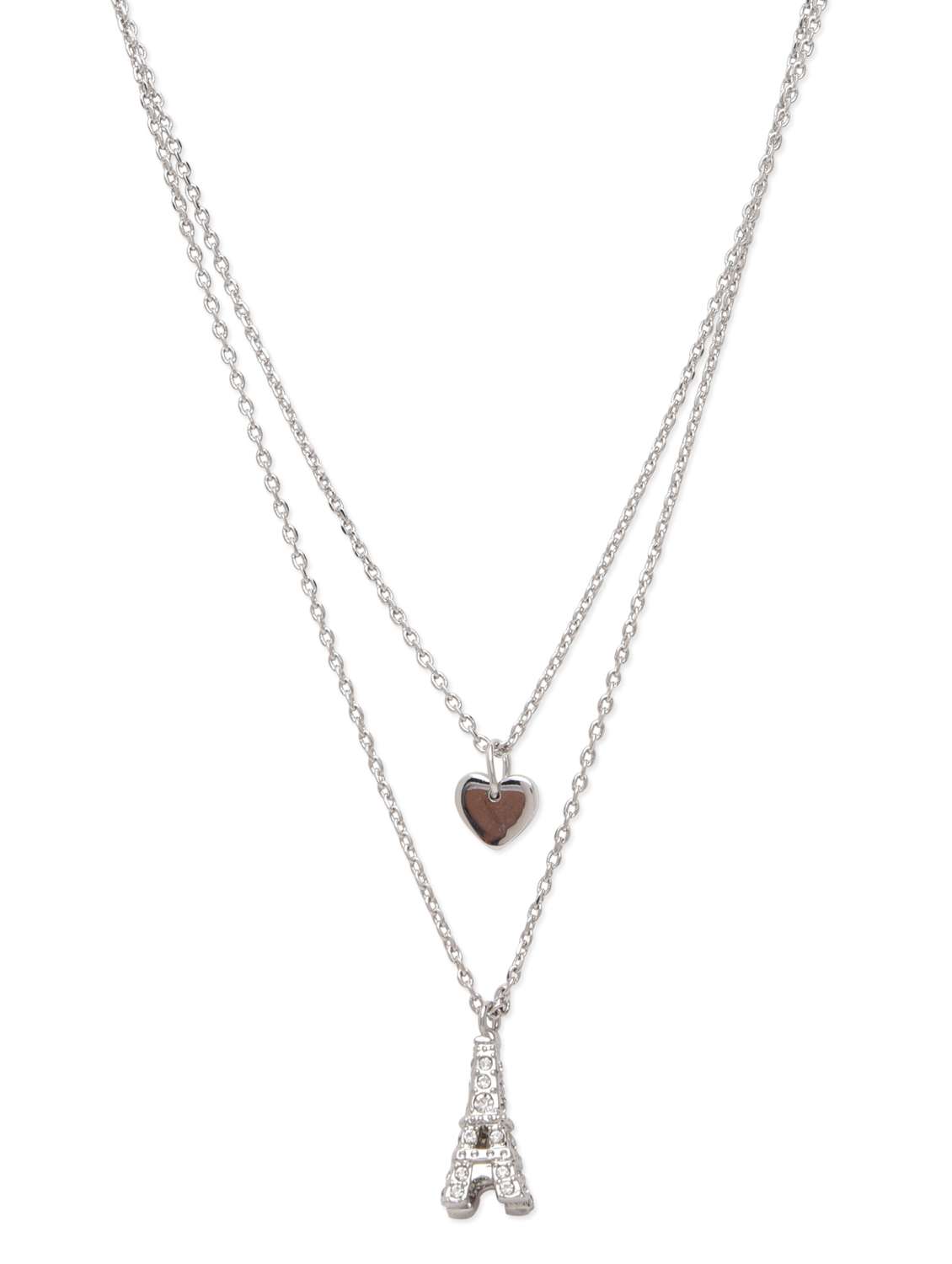 #3 silver heart and eiffel tower pendants layered necklace & similar products...
