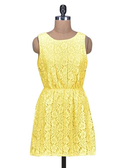 #1 Solid Yellow Cotton Lace Dress & similar products...