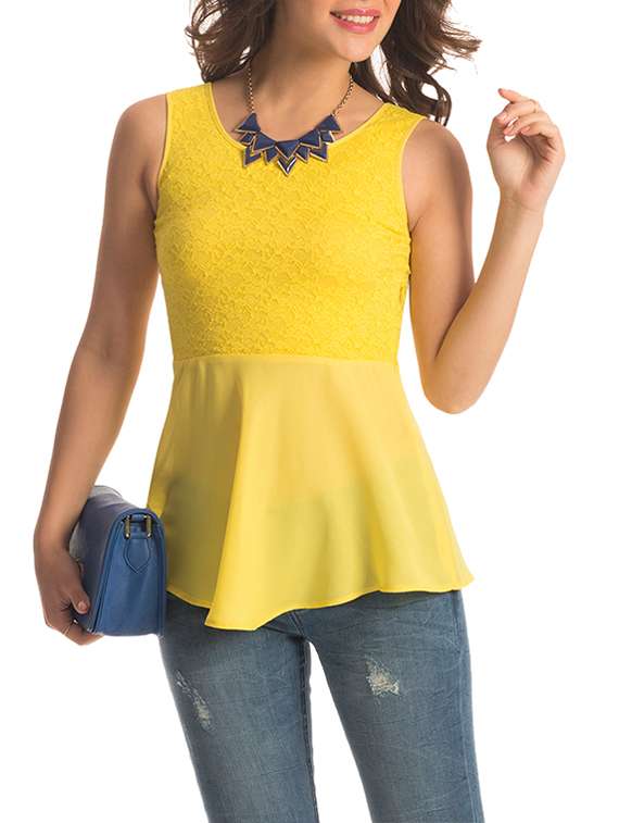 #1 lacey yellow peplum top & similar products...