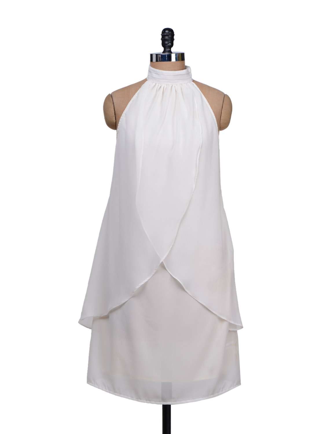 #1 wavy drapes halter neck white dress & similar products...