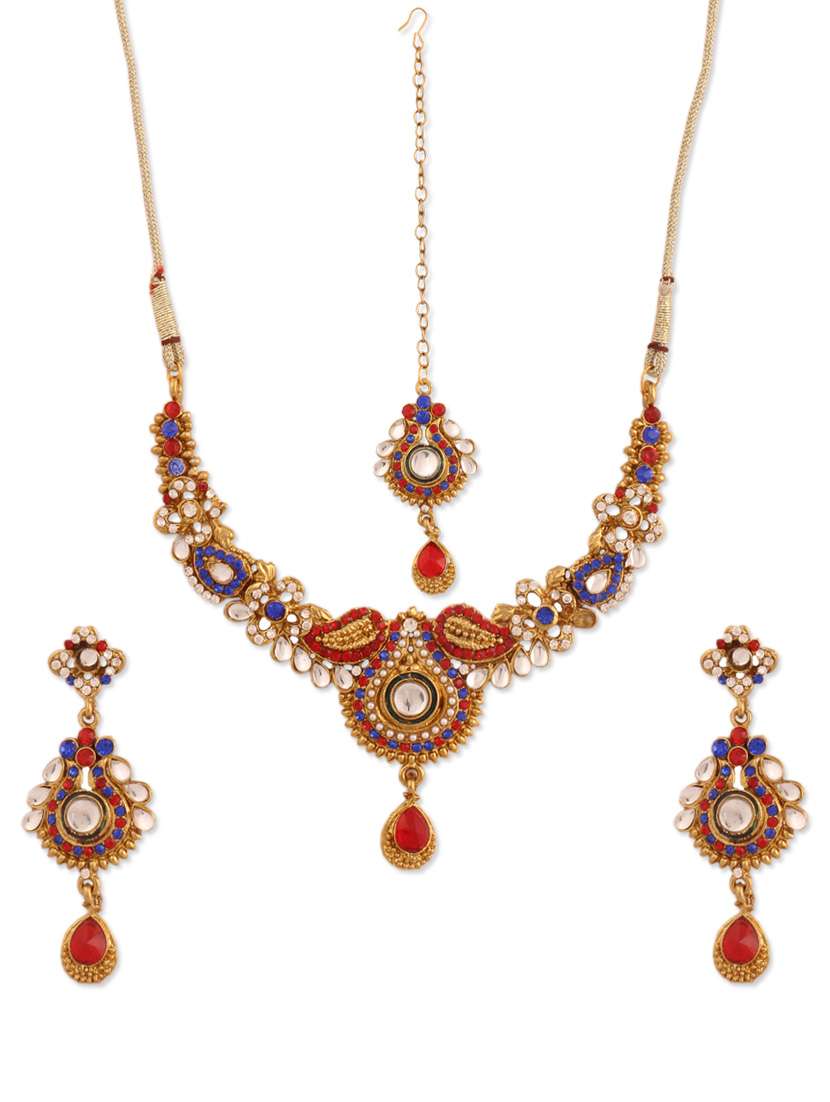 #2 intricate stone embellished necklace and earring set & similar products...