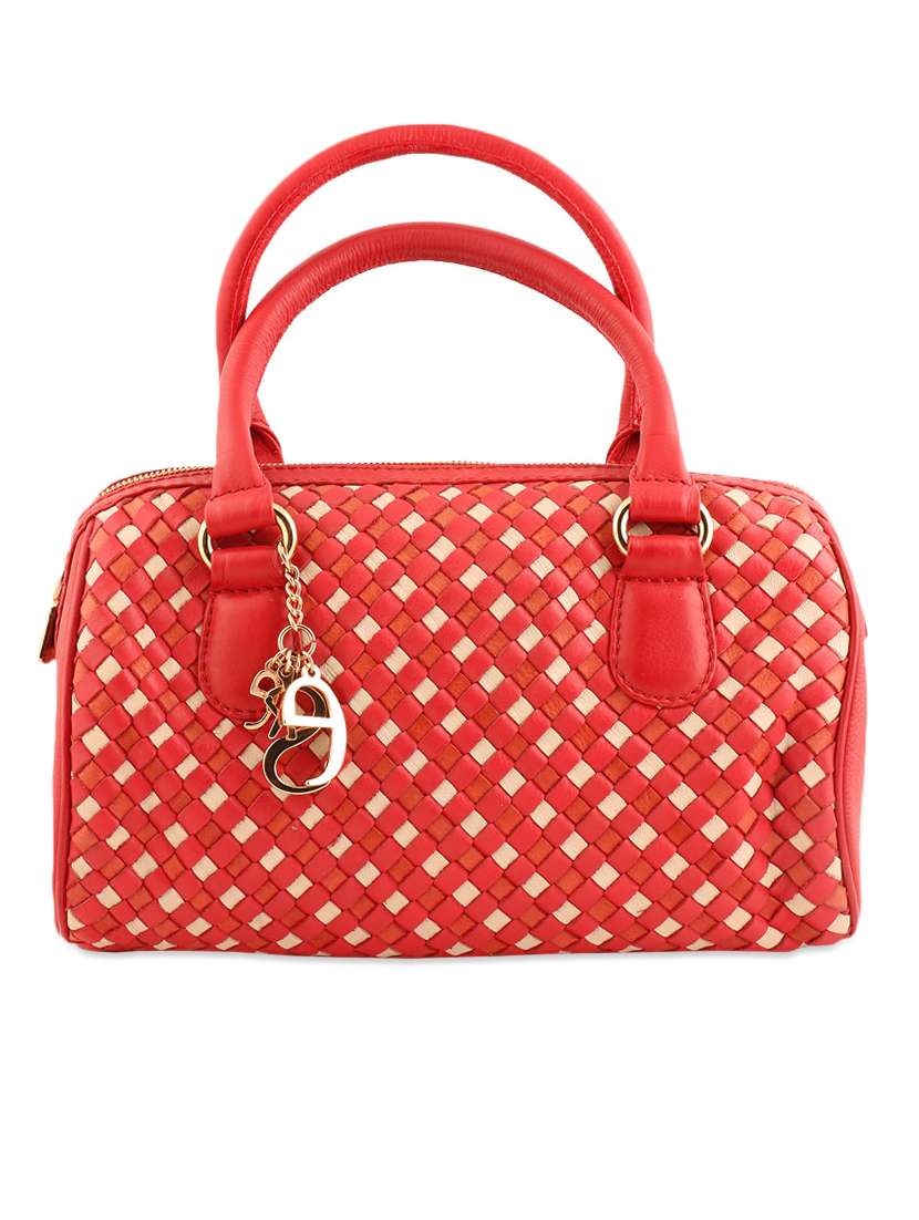 #2 red leather handbag with weaved detailing & similar products...