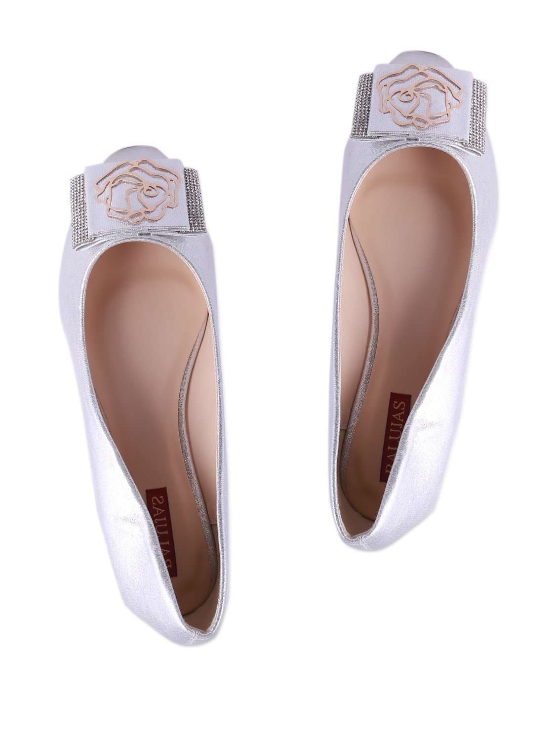 #2 chic silver ballerinas with golden metallic rose buckle & crystal embellishment & similar products...