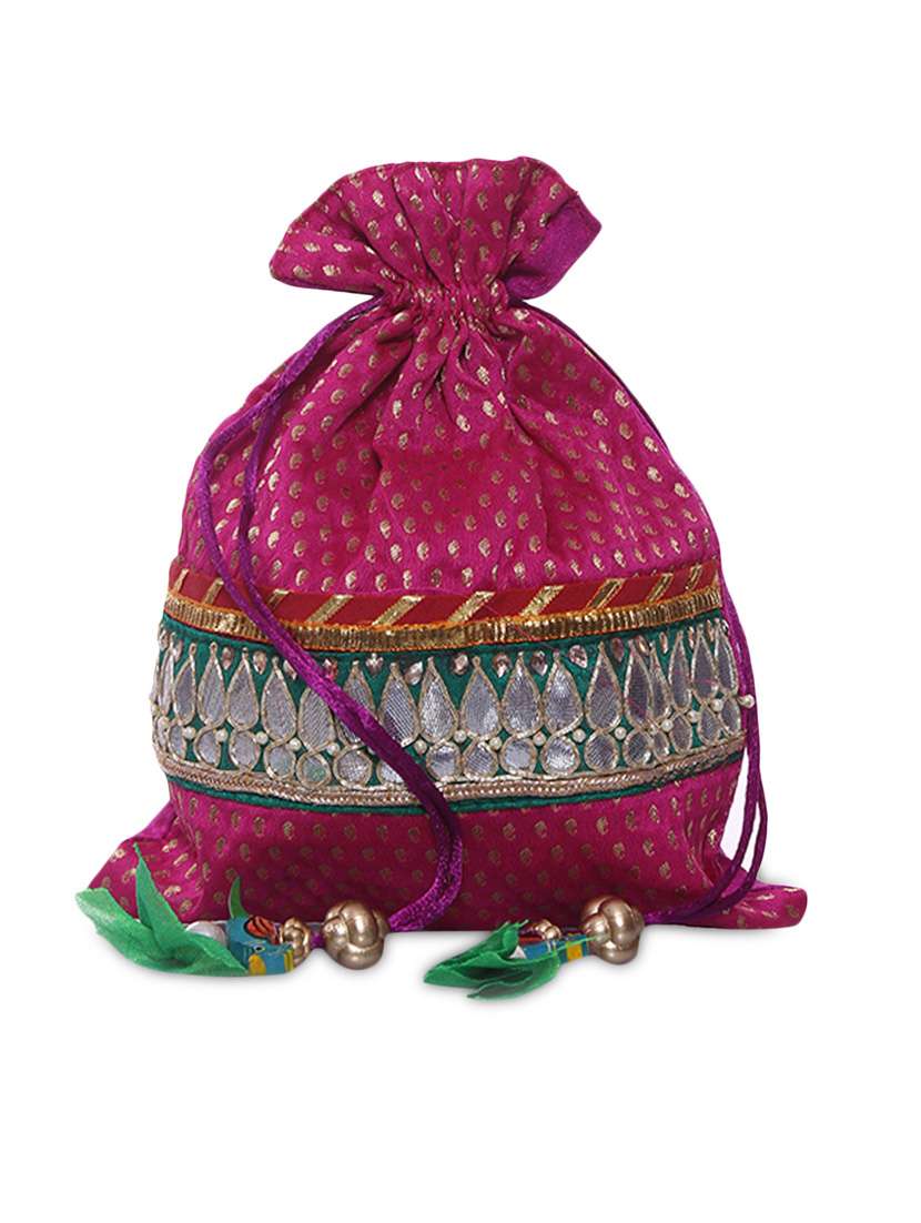 #4 pink embellished row silk potli bag & similar products...